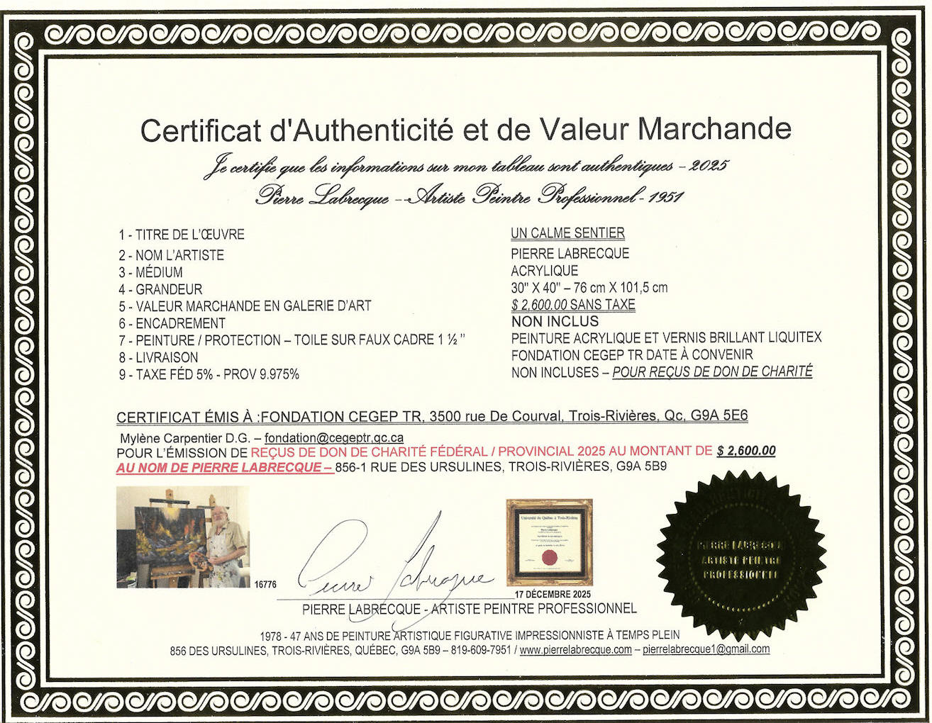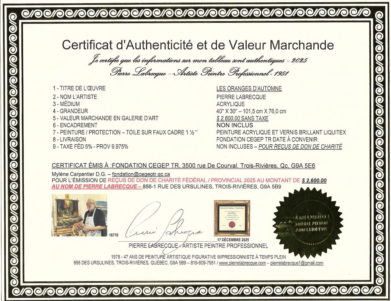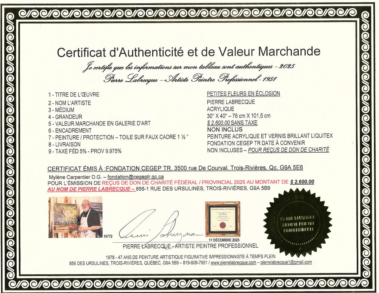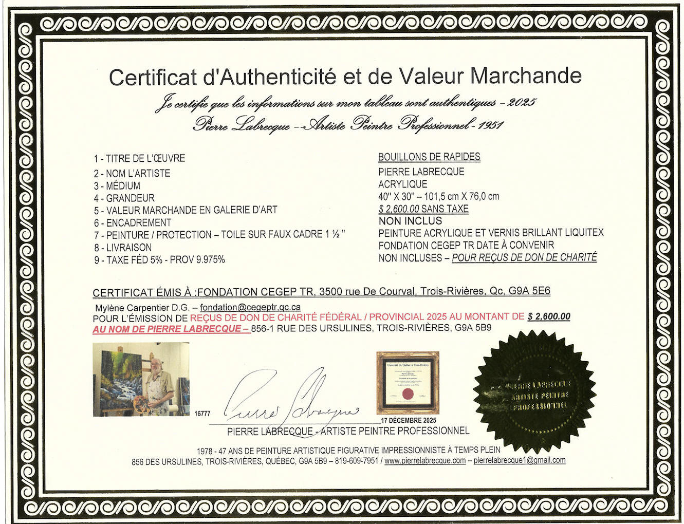 TROIS-RIVIÈRES 2025 3500 rue De Courval, Trois-Rivières, Qc, G9A 5E6 819-376-1721 - poste 2120 – Mylene Carpentier D.G. – fondation@cegeptr.qc.ca |